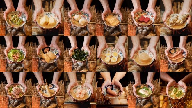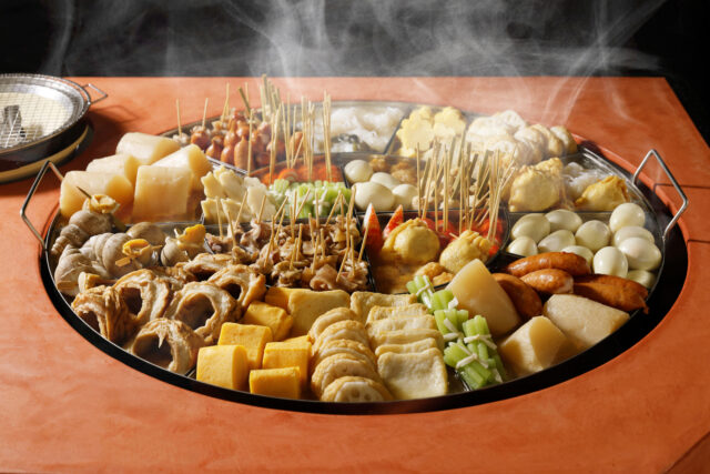 目の前でぐつぐつと煮える迫力、立ちのぼるだしの香り、そして一品ごとにしっかり染み込んだ旨みを、五感で楽しんでいただけます。大根やたまご、牛すじ、梅貝といった定番はもちろん、能登牡蠣のおでんや輪島産 毛蟹のかに面など、北陸らしさを感じられる一品までお楽しみ頂けます。
